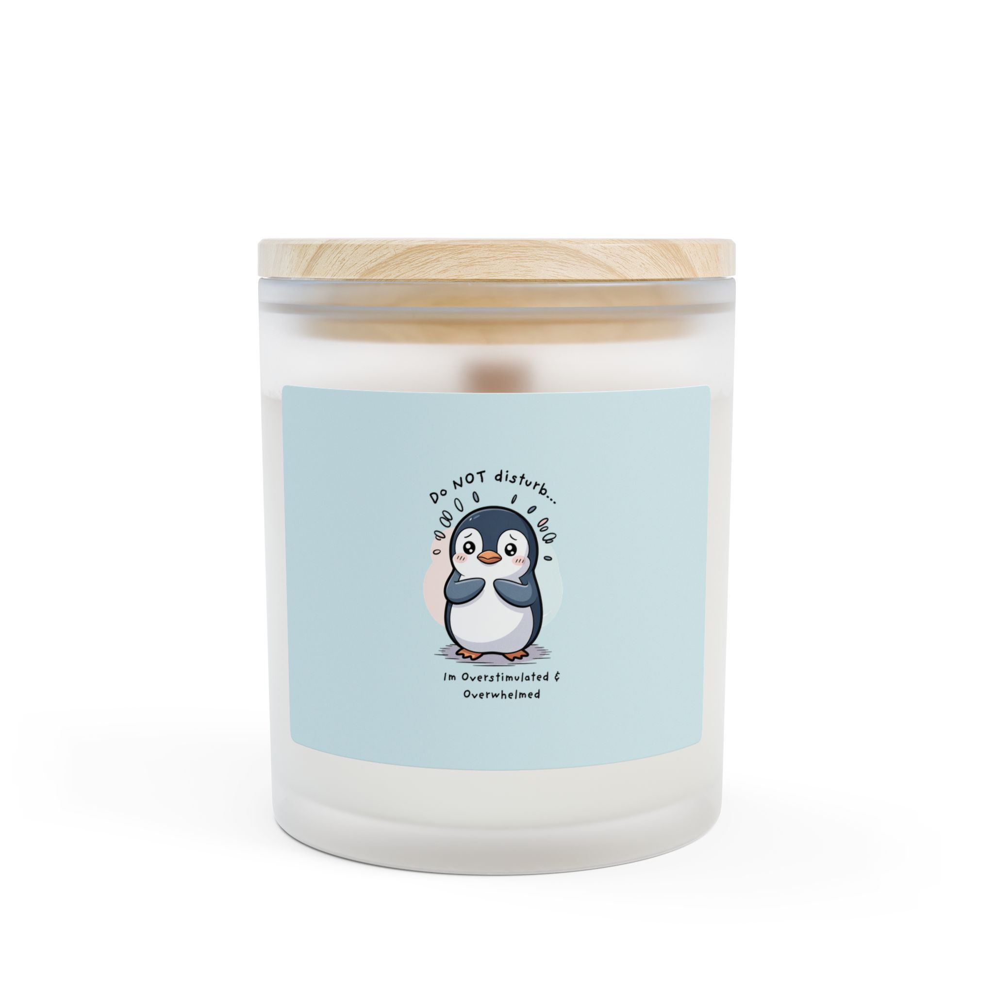 Light this frosted glass candle when the world feels too loud. The tiny chibi penguin on the jar wears a sleepy, ‘Do Not Disturb’ expression that nudges you to slow down. The soft, natural off-white glass and warm maple lid sit quietly on a bedside table or desk, while the wooden wick adds a gentle, crackling comfort to the air. Each 11 oz candle is hand-poured with a coconut-soy blend and crafted to soothe restless thoughts — choose a calming scent and let the subtle glow and clean burn coax you into focused rest. It’s made for late-night decompressing, anxious moments between meetings, and those small rituals that help you reclaim calm.