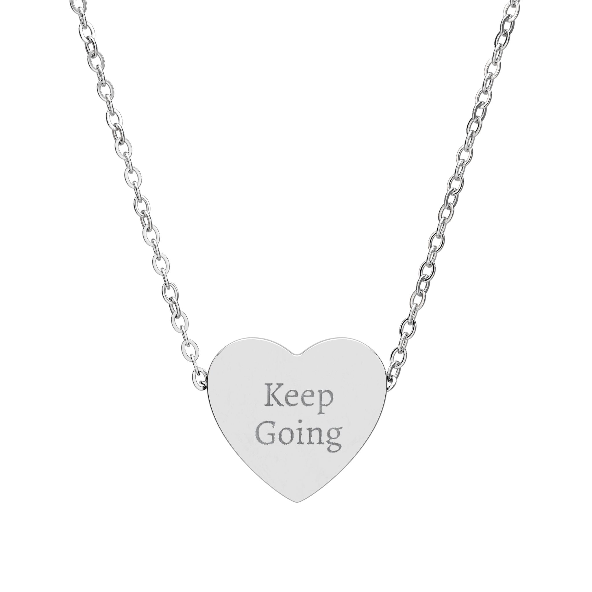 A small, engraved stainless-steel heart that quietly carries a message. Smooth, surgical-grade metal with a crisp laser-etched phrase sits on a delicate chain. It catches light without shouting, and the subtle engraving becomes a private mantra during long days, late-night study sessions, or slow morning coffee. Lightweight and hypoallergenic, it wears comfortably against skin and layers neatly beneath jackets or over sweaters. Wear it as a personal reminder to keep moving forward, or give it to someone who needs a gentle nudge and a steady, wearable sentiment.