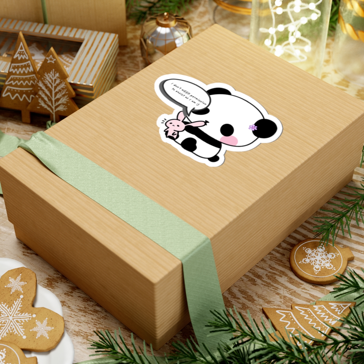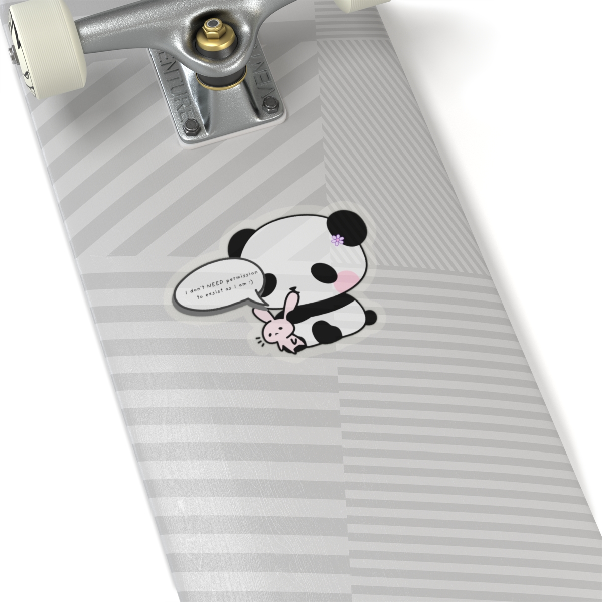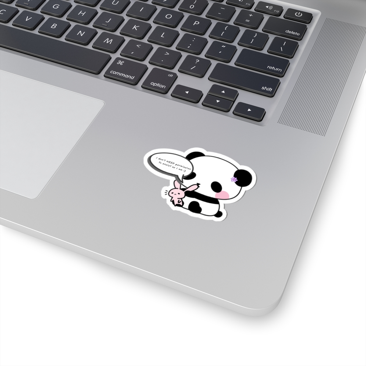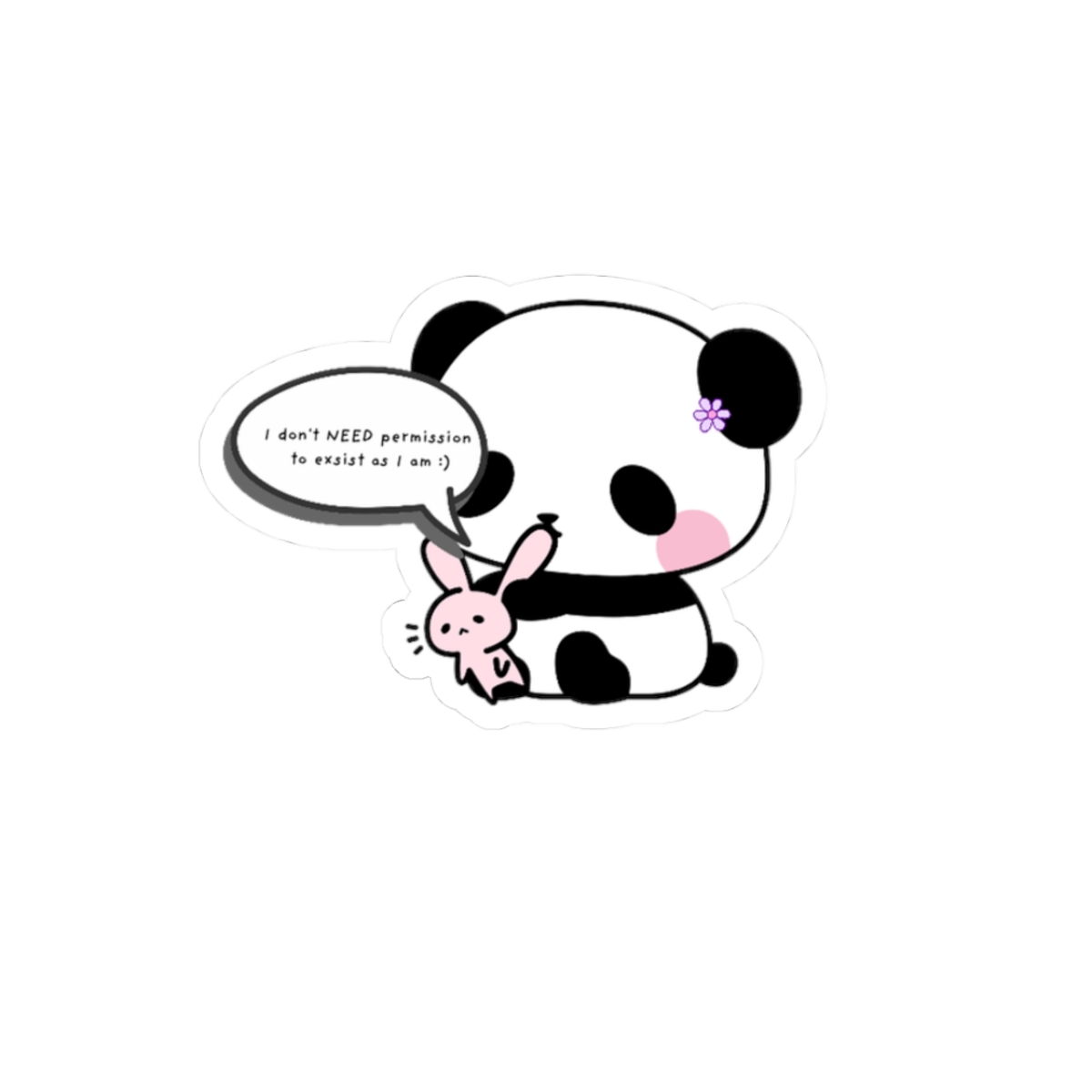 This glossy kiss-cut sticker features a sassy panda with the bold affirmation “I don’t need your permission to exist.” It delivers a sharp, unapologetic vibe—perfect for people who celebrate blunt self-expression. Stick it on a laptop, water-resistant journal cover, or bedroom window to make a quiet, defiant statement. The panda’s playful smirk and confident line add humor while holding firm to independence and boundaries. It lands comfortably in the world of stationery rebels, feminist humor, and anyone who collects outspoken, character-driven stickers for their everyday gear. Use it during late-night study sessions, on commute-ready devices, or as a small rebellion in shared spaces—the sticker speaks for you when words might feel heavy.