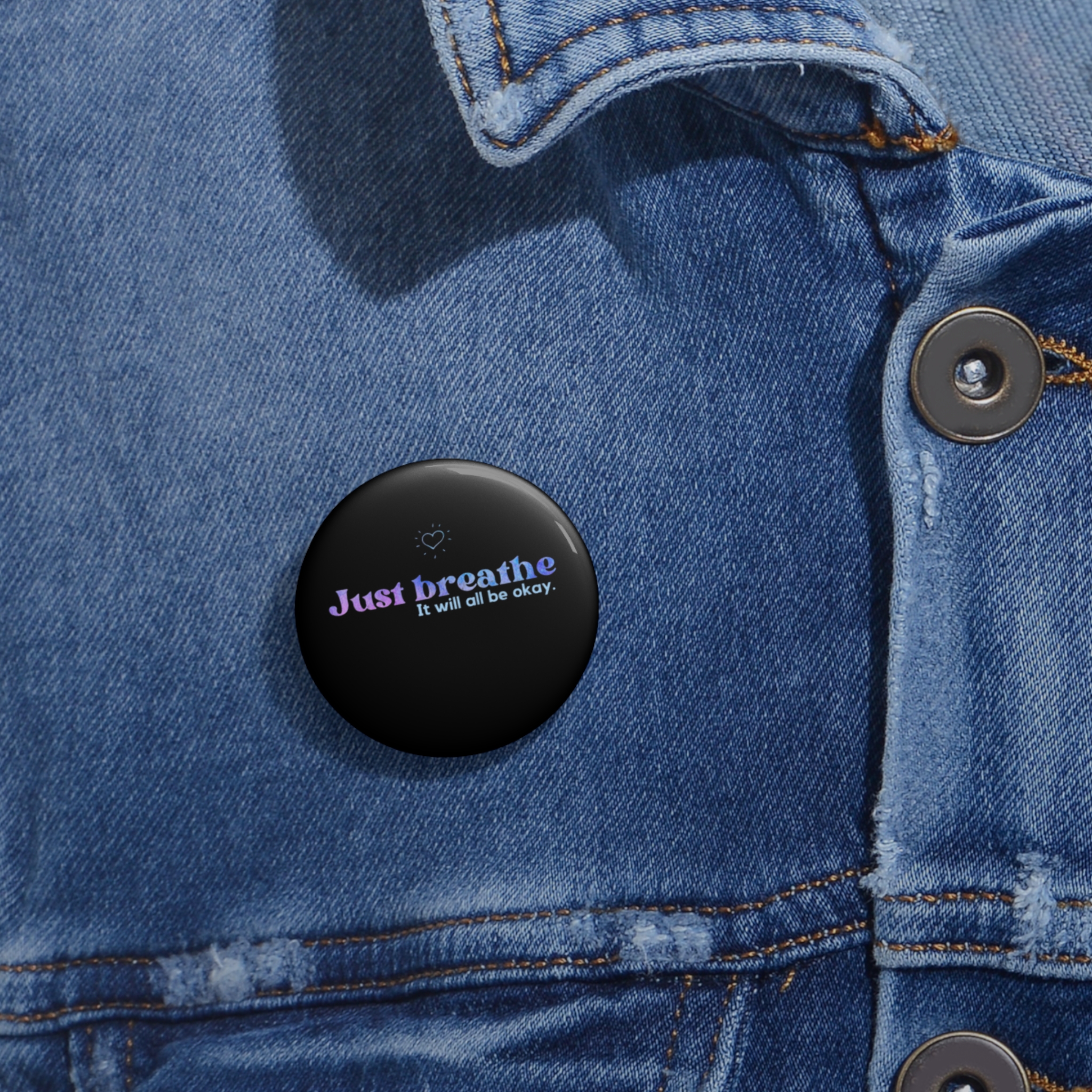 Small, confident reminders you can wear. These glossy pin buttons carry a soft, calming message in vibrant pastel colors against a matte-black backdrop—an easy way to share encouragement without saying a word. Lightweight and sturdy, they clip onto jackets, bags, hats, or lanyards and hold up to daily wear thanks to a scratch- and UV-resistant mylar finish. Each button is assembled in the USA from quality parts, giving you a tactile token of comfort to reach for during busy days, anxious moments, or when you want to brighten someone’s commute.