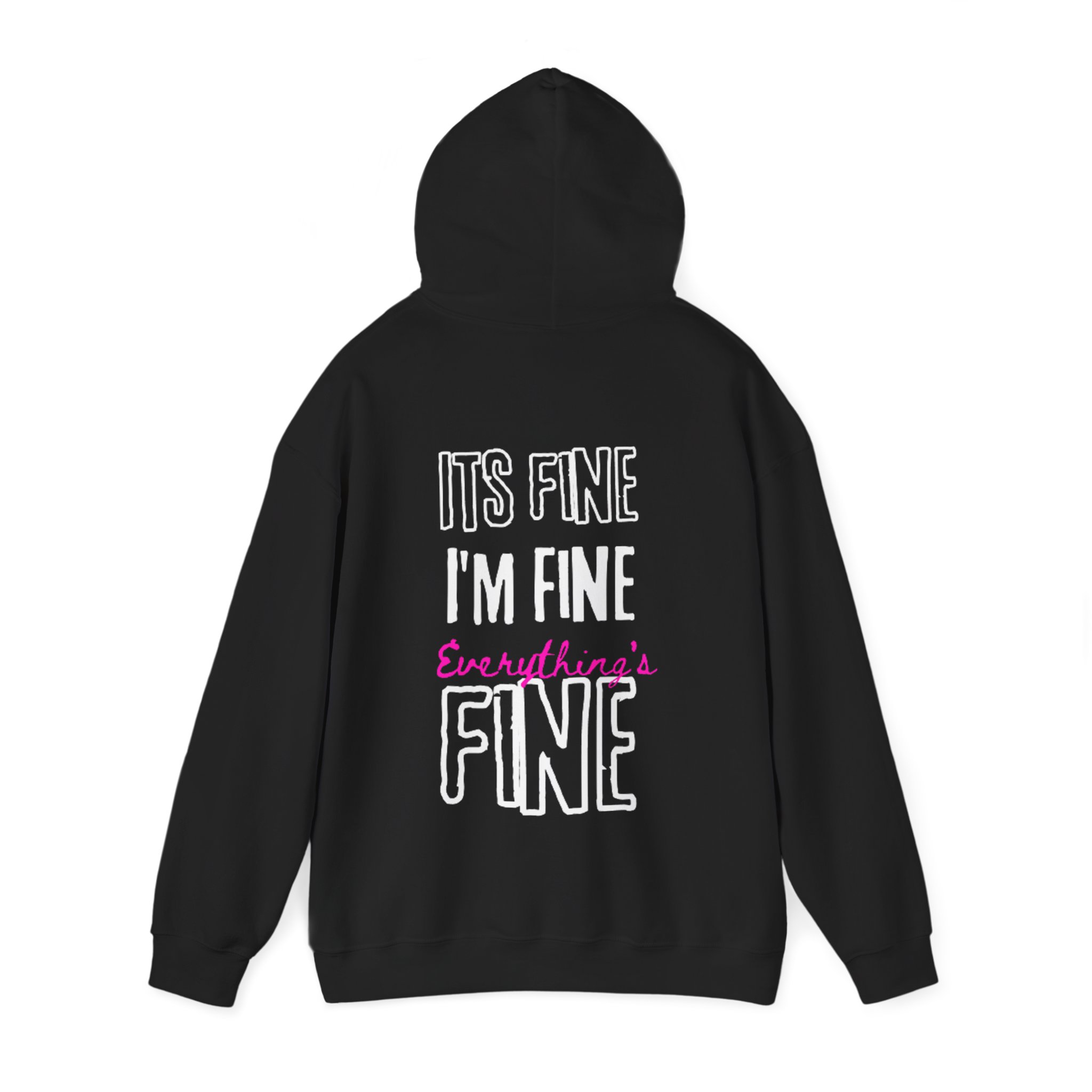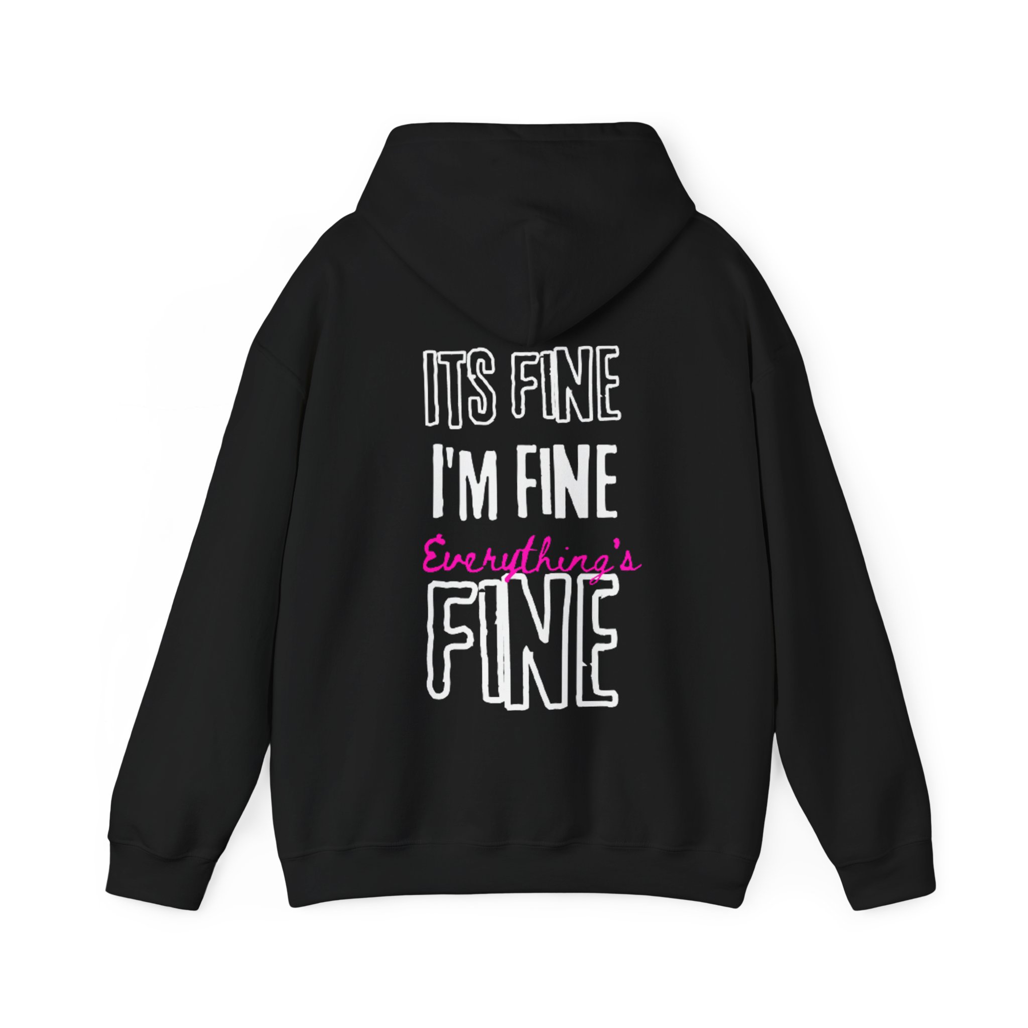 Carry a little dark humor into the everyday. This midweight hooded sweatshirt wears the message loud and clear: “It’s fine, I’m fine, everything is fine,” offset by a bold skull motif on the front and matching back print. It settles in like a familiar sarcastic friend — warm pockets for cold hands, a double-lined hood that feels sturdy when you pull it up, and a soft, brushed interior that makes long walks, late-night drives, or lazy mornings more bearable. The design speaks to people who cope with a wink and a shrug, who want their wardrobe to reflect a sharp, honest sense of humor without sacrificing comfort. Wear it to low-key gatherings, mental-health fundraiser events, or when you simply need an outlet for a wry mood. The balanced cotton-poly blend holds the print well and keeps its shape, while the tubular knit and tear-away label keep irritation to a minimum. This is for grown-ups who find solace in candor, who collect small rebellions in the form of clothing, and who appreciate a garment that looks as lived-in and real as they feel.