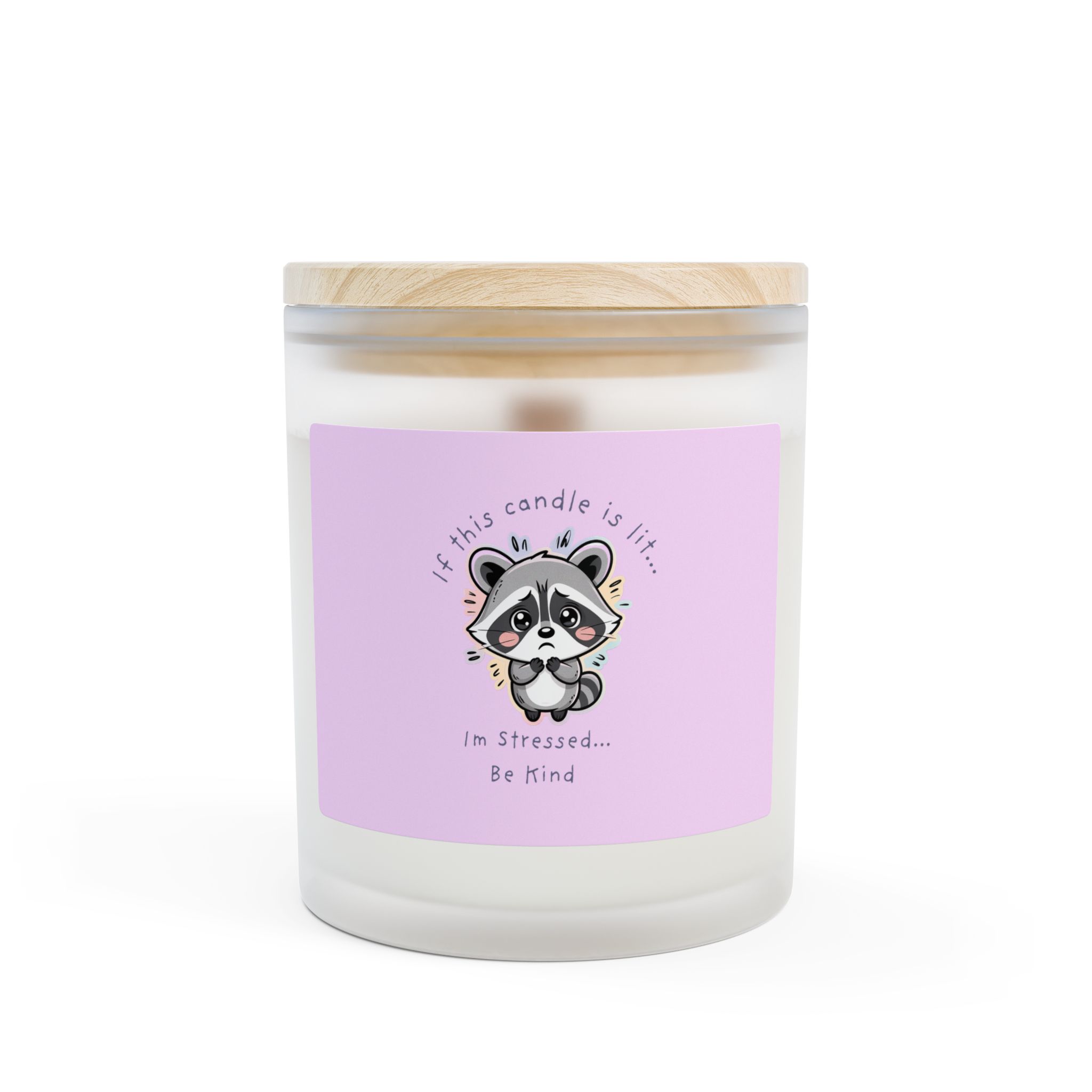 Light the wooden wick and let a wry, calming moment unfold. This frosted glass candle carries a hand-drawn stressed raccoon illustration that nudges out a laugh, then settles into something quieter — a reminder that it’s okay to breathe. The soft, off-white vessel and raw maple lid sit easily on a nightstand or therapy office shelf, blending with neutral décor while the gentle crackle of the wood wick creates a cozy, grounding sound. Choose from nine carefully balanced scents so the scent becomes a small ritual: a pause between appointments, a late-night unwinding session, or a thoughtful note for someone navigating tough days.